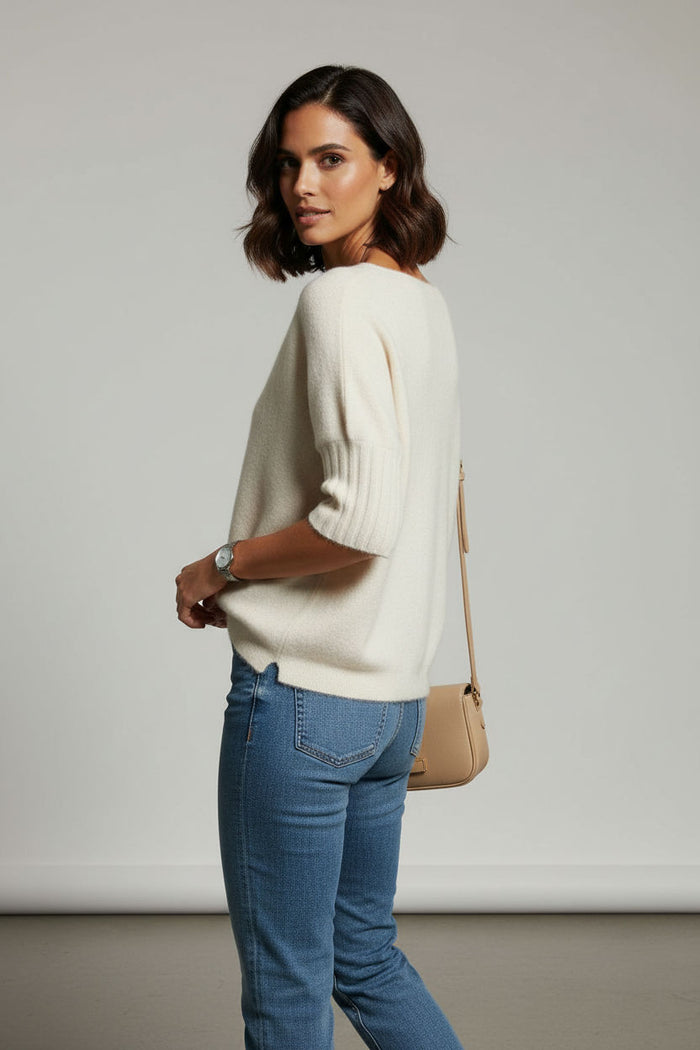 Boat Neck Short Sleeve Knit Sweater in Cornflower Blue