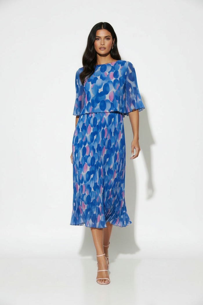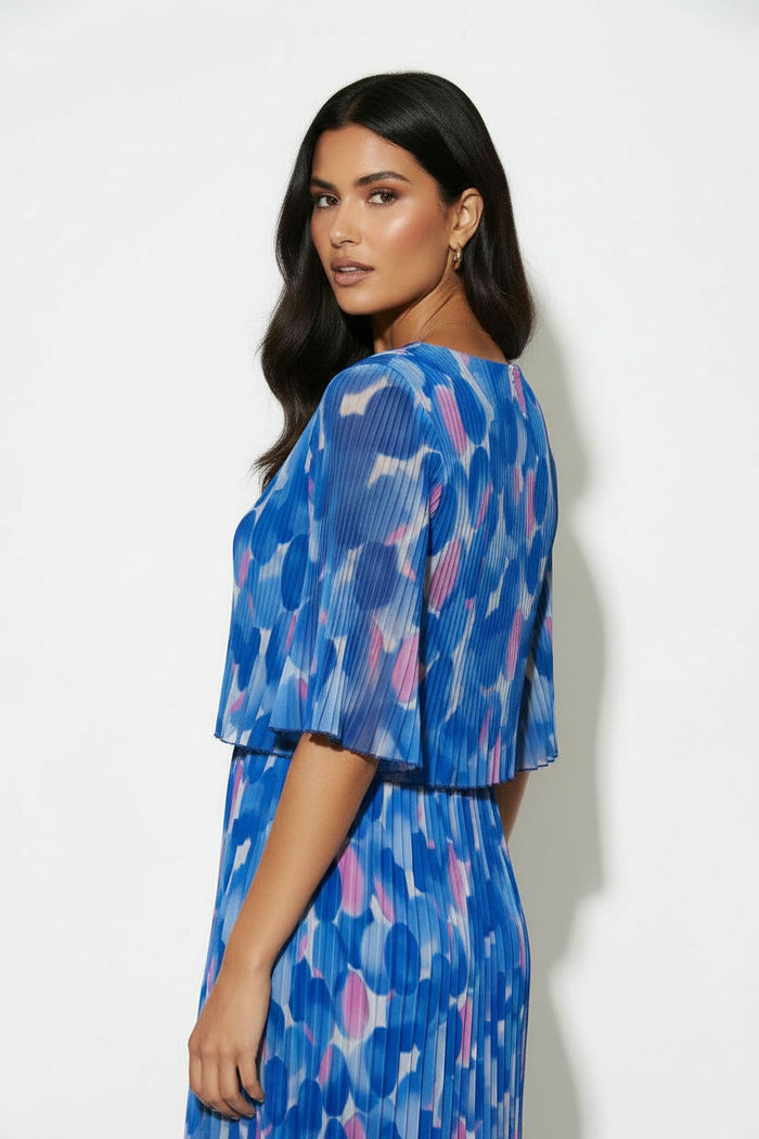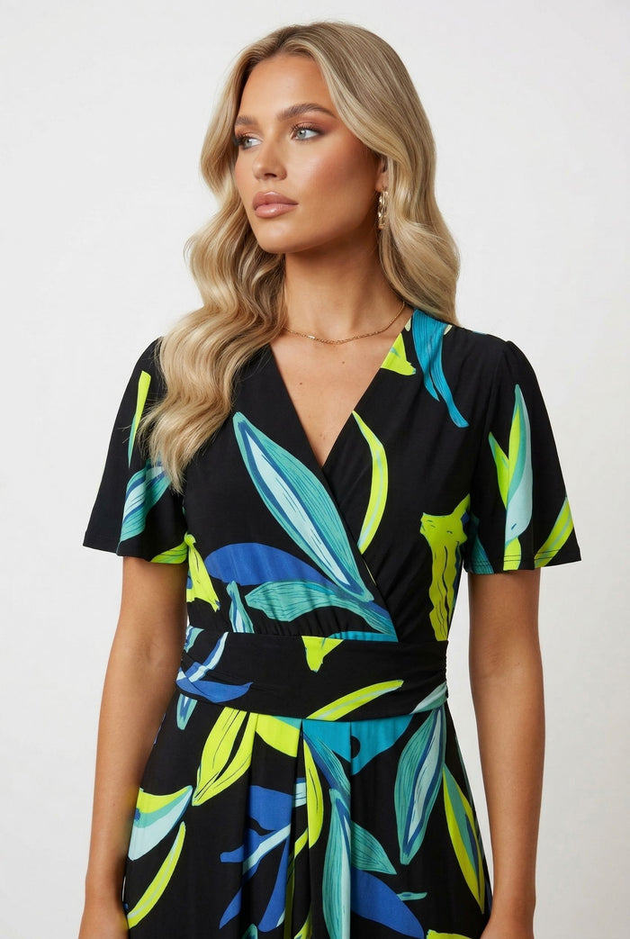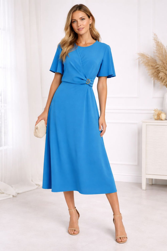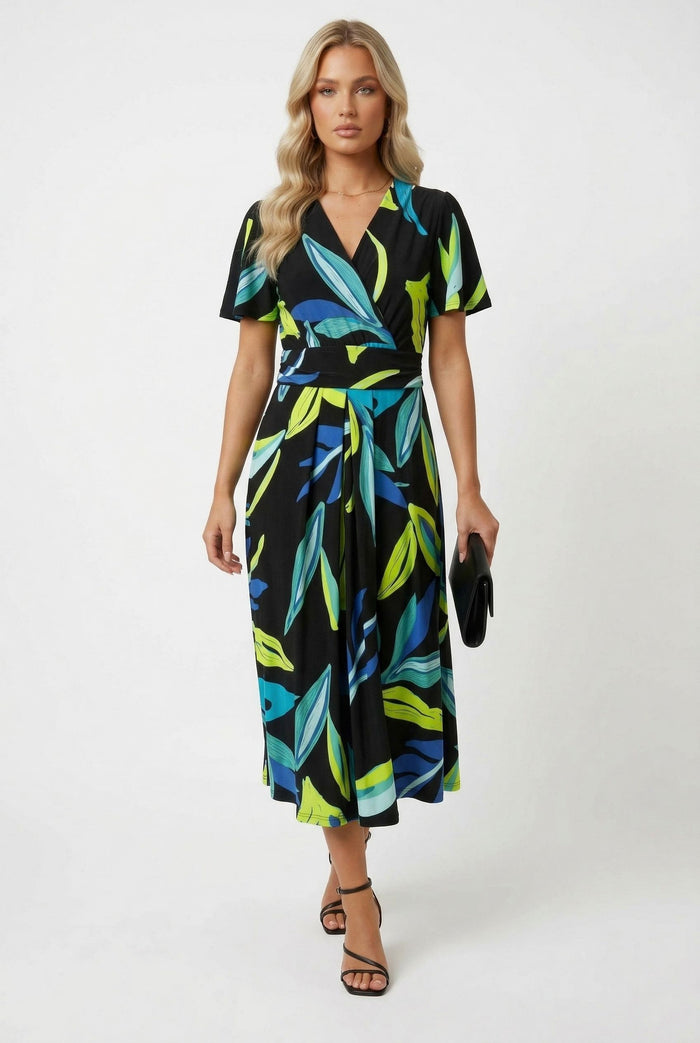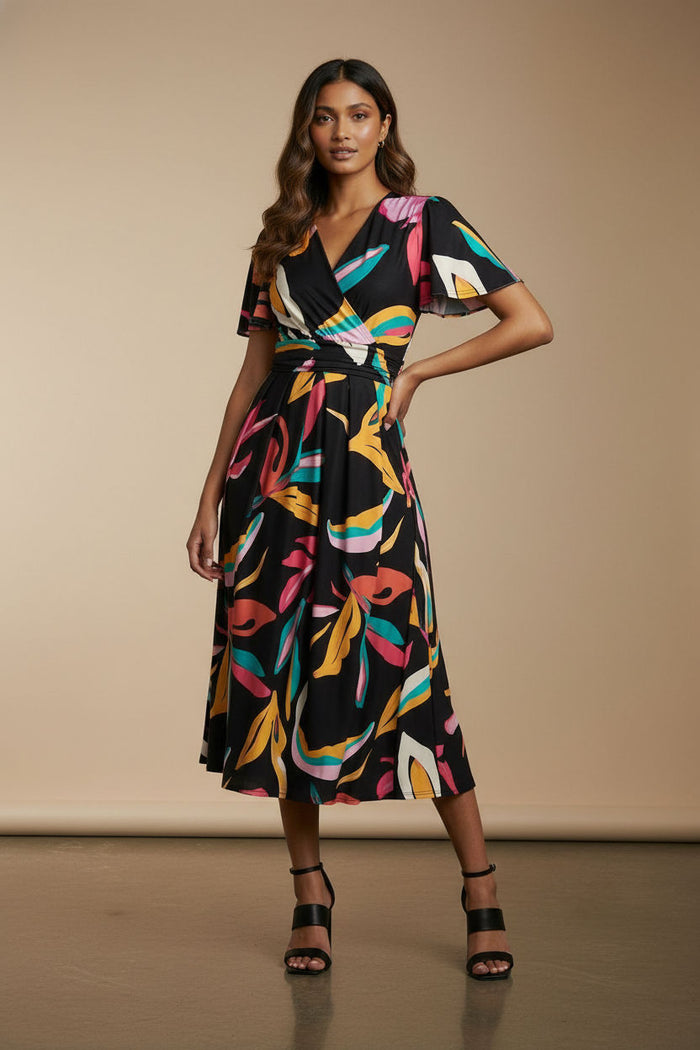 Short Flutter Sleeve Wrap-Style Midi Dress