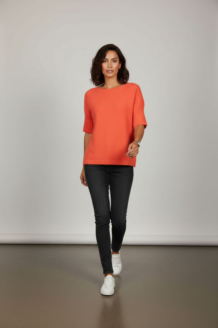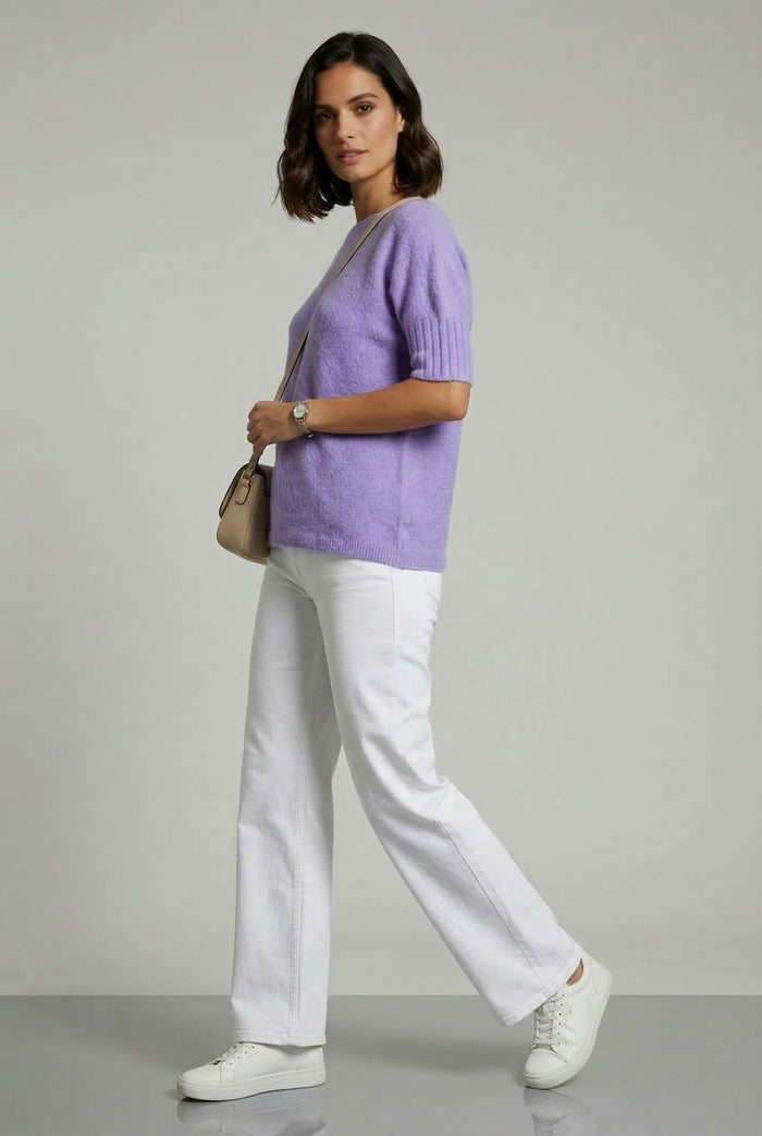 Short-Sleeve Rib-Trim Knit Sweater in Bubblegum
