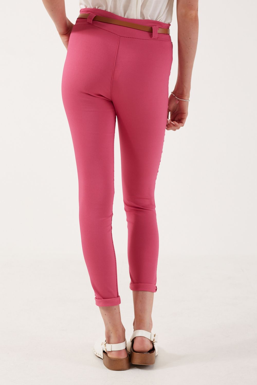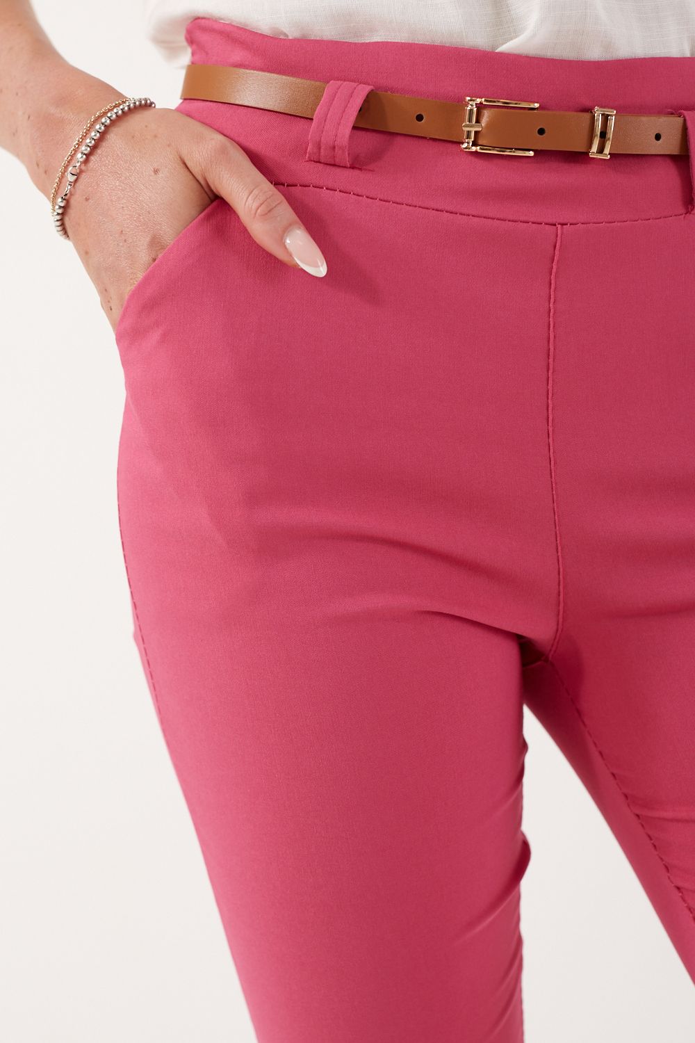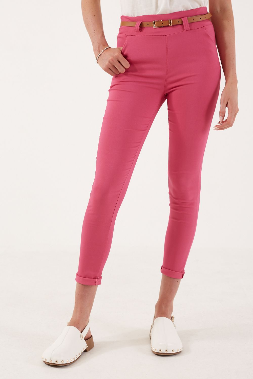 These pink trousers are perfect for your non denim days. Featuring a high rise fit, pull on style and elasticated waist for comfort. An easy to wear piece with shirts and cami tops.