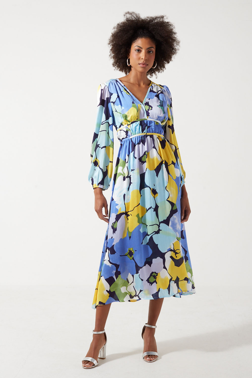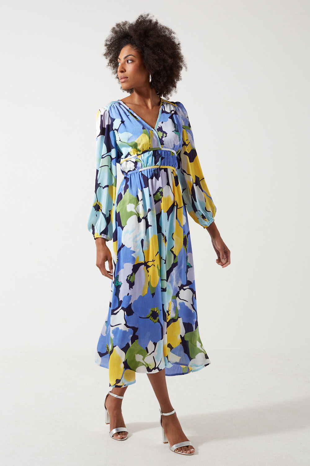 Exalling femininity and sophistication, the Aurora Midi Dress features a flattering empire waist and a V-Neck which combined with the long sleeves and the midi length of its A-line skirt guarantees an elongated silhouette and romantic touch to this beautiful piece. Style it simply with heels or court shoes, add a clutch and you are ready to any occasion that requires a special outfit.