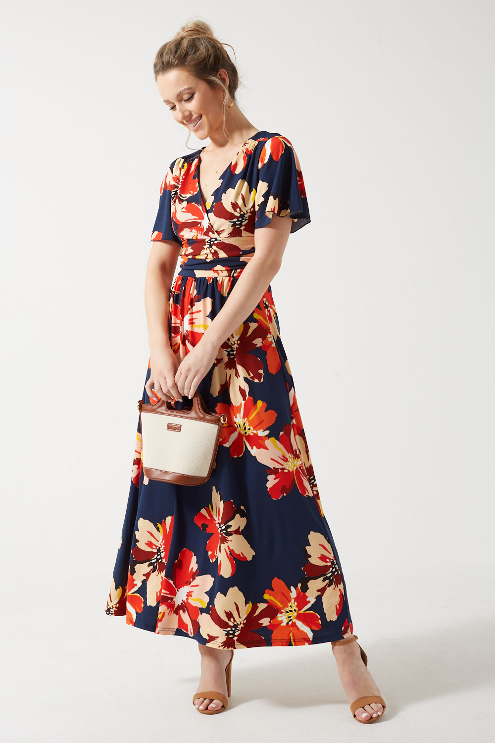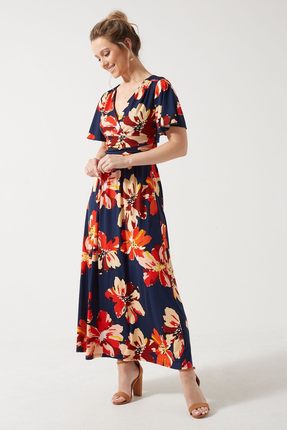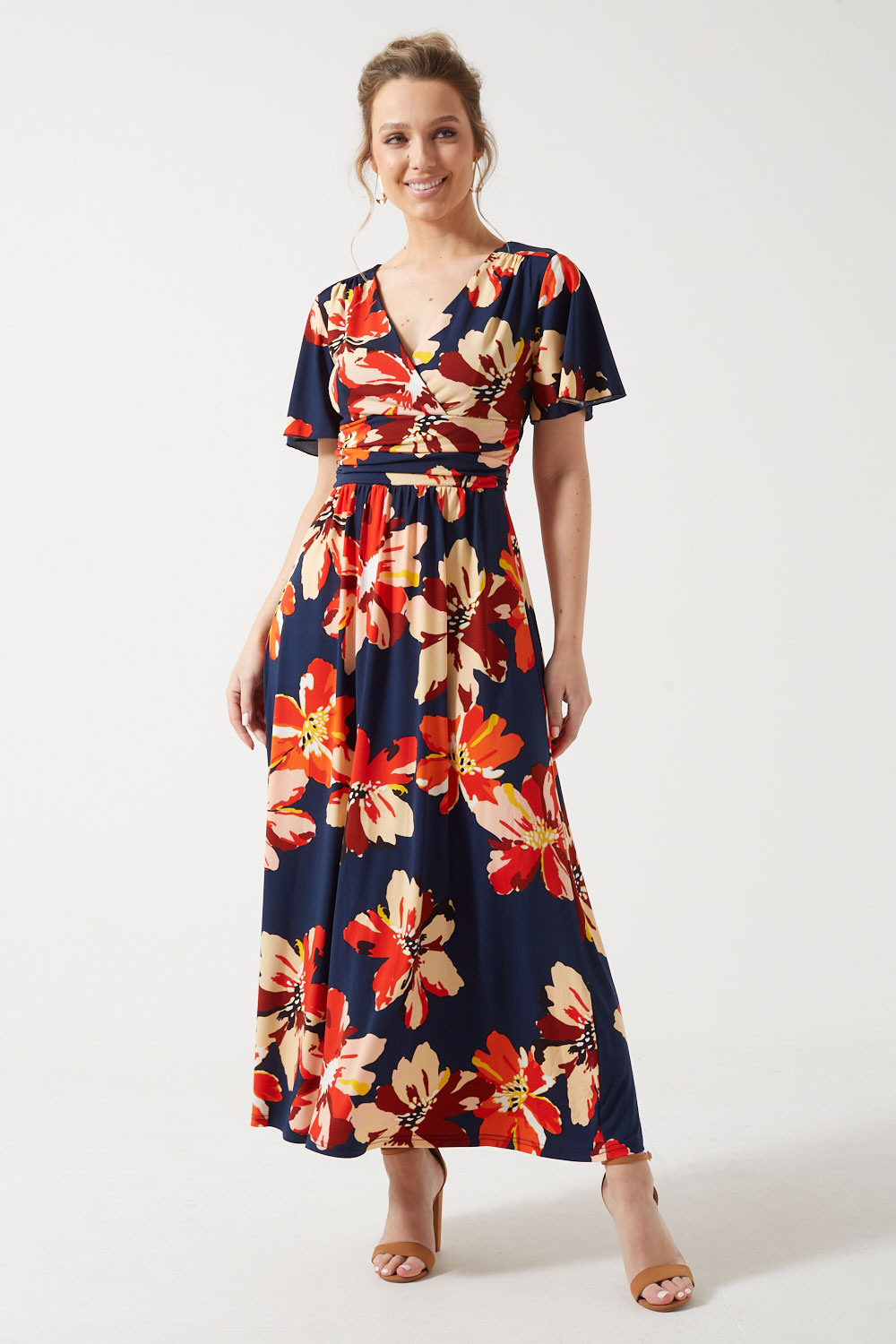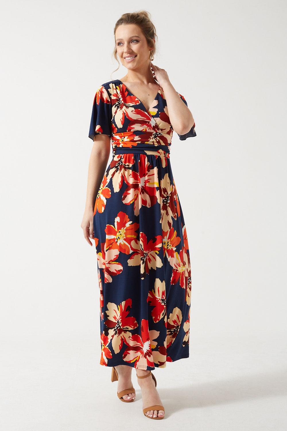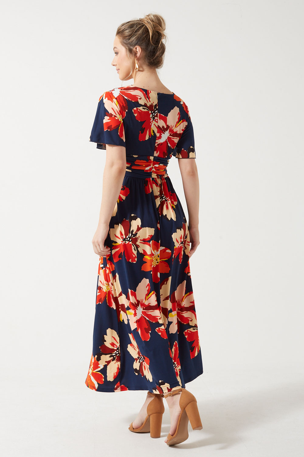 Featuring a ruched detail at the waist, the Claudia floral dress is a comfortable and flattering everyday option that will look elegant styled with heels or pumps. For a more casual outfit, wear it with flats or espadrilles.