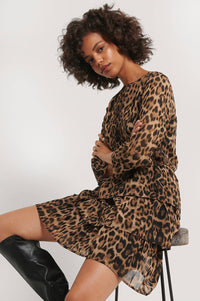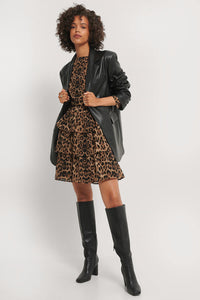 NA-KD Chiffon Animal Print Dress in Brown