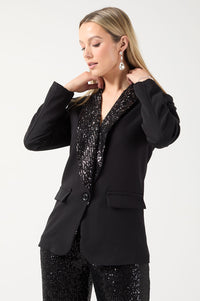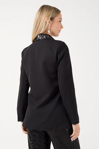 Elevate your party style with the Annie Sequin Lapel Blazer in Black, a must-have for festive gatherings and chic evenings out. Its striking sequin embellishments shimmer effortlessly, making you the center of attention while ensuring you feel confident and glamorous. This versatile blazer is perfect for the Christmas party season or any special occasion, combining sophistication with a touch of sparkle.