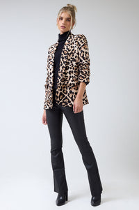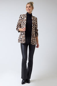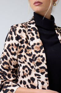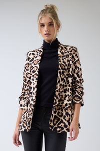 Chantel Leopard Print Ruched Sleeve Blazer in Beige