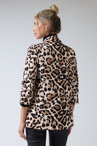 We love this ruched sleeve and leopard print blazer! The Chantel style is a Marc Angelo classic with an open style and a soft silhouette. Wear this key piece with everything, from dresses to jeans depending on your occasion.