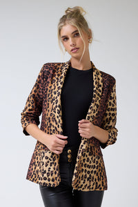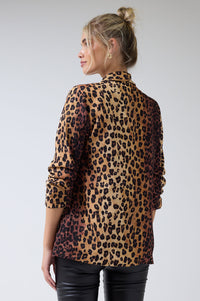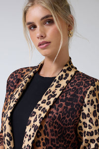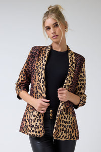 Chantel Leopard Print Ruched Sleeve Blazer in Tan