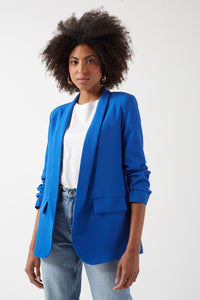 Chantel Ruched Sleeve Blazer in Royal Blue