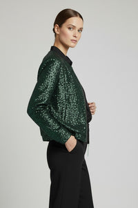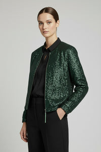 Sequin Zip Jacket - Green.Sequin Zip Jacket in Green from Marc Angelo.