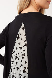 This high low top features a butterfly design on a mesh fabric, wear over leather leggings with boots to complete the look.