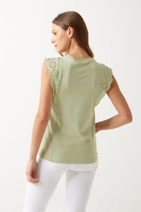 This crochet detail top is a Spring/Summer wardrobe essential, wear with denim jeans and trainers for a casual summer look.
