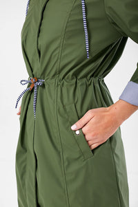 A raincoat is a necessity for the changeable Spring days. This long line raincoat features contrast striped lining and press stud fastening. A great basic to wear over your everyday basics.