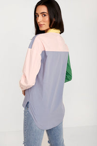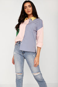 Spice up your wardrobe with this fun colour block shirt, featuring two pockets and dip hem. Style with jeans and trainers to complete the look.