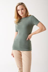 A basic tee is a wardrobe must-have and we adore this t-shirt with a flattering boat neckline. Pair with jeans or joggers for the ultimate comfort.