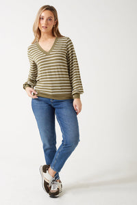 Rita V Neck Stripe Top in Green
