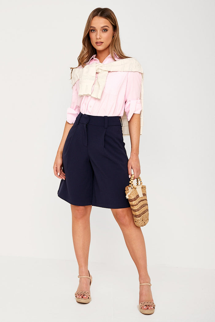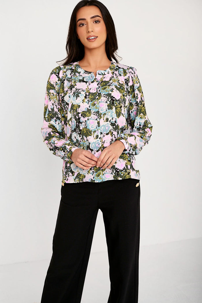 Fuchia Floral Print Button Up Crop Top in Blue