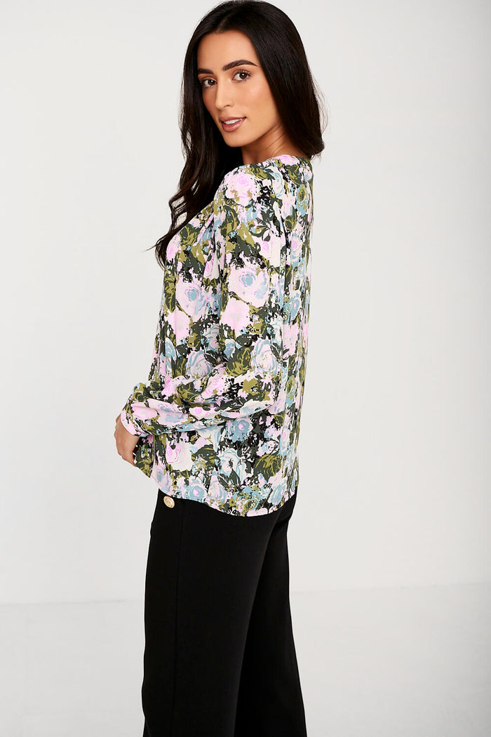 Alma Floral Print Pleated Midi Skirt in Green