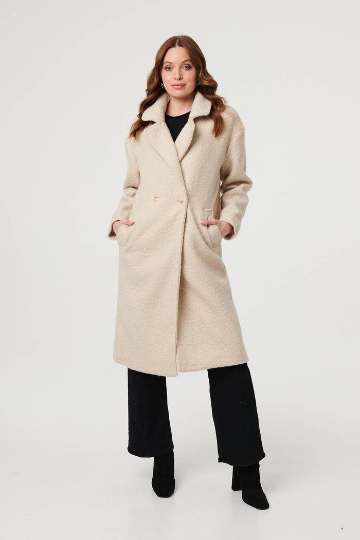 Teddy Texture Long Sleeve Oversized Coat in Beige