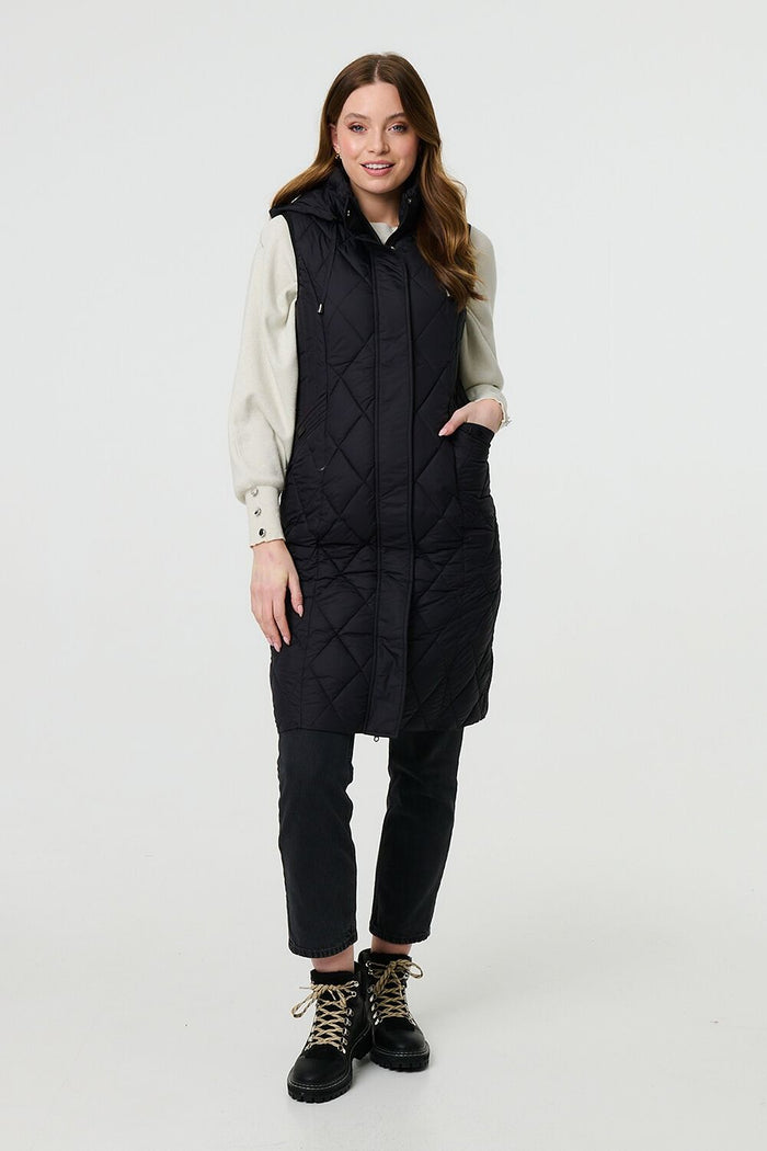 Izabel Hooded Sleeveless Longline Puffer Gilet