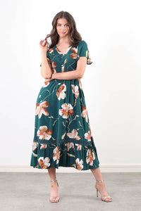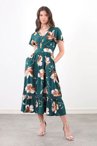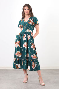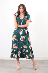 For a classic look that will never go out of style, try this lace trim midi dress. Complete with hidden pockets, this dress has a flattering v-neck, short angel sleeves, lace details and a ruffled midi length hem. It can be dressed down for a casual day out, or dressed up as the perfect wedding guest outfit.