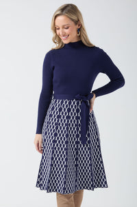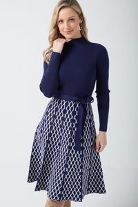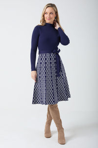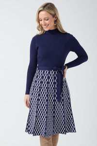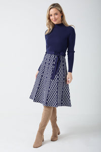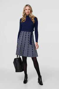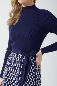 No cold weather closet is complete without a sumptuous jumper dress like this midi knitted dress. With a high round neck, long sleeves, a ribbed knit bodice and a contrast skirt sitting below the knee. Pair with tights and loafers for an effortlessly cool office look or elevate with heels and faux fur coat for dinner.
