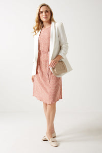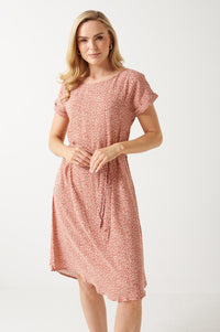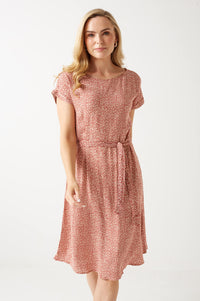 This printed midi dress is perfect for casual Spring/Summer days. Featuring cap sleeves and waist tie, style with slider sandals.