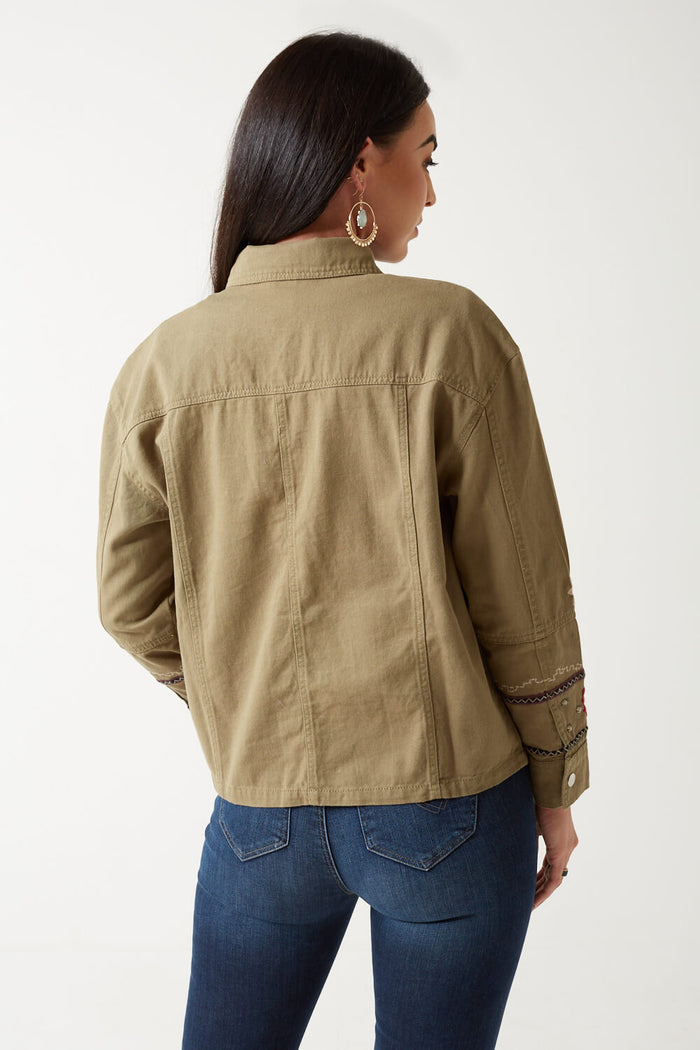 Anaya Embroidered Denim Jacket in Khaki