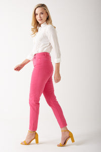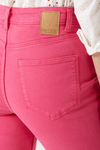 New in from Pieces are these high rise mom jeans. Comfort stretch is a soft, stretchy, and comfortable woven fabric with a smooth surface. Style these trendy jeans up or down for a cute and comfy look.