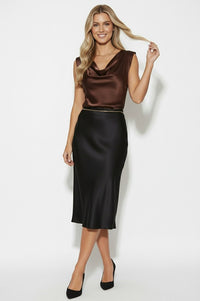 Lia Satin Cowl Neck Top in Chocolate