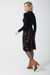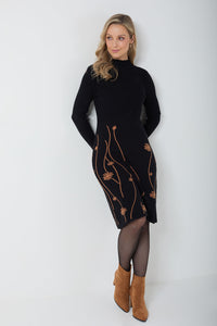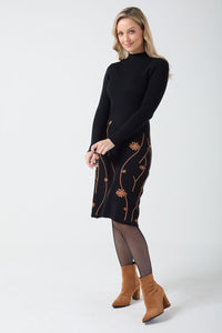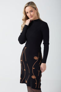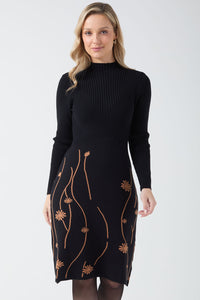 The Sue Knit Knee Length Dress from Stella. Featuring a high neck with stretchy ribbed fabric and knee length shape.