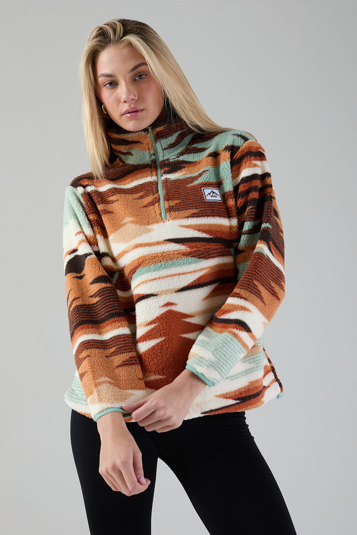 Polly Half Zip Printed Fleece in Beige Aztec