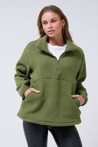 Molly Zip Front Fleece in Khaki