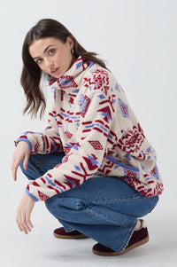 Introducing the Polly Half Zip Printed Fleece in Beige Aztec—a must-have for those chilly days when you still want to look stylish! This versatile fleece combines comfort and contemporary design, making it a favorite among fashion lovers. Its unique Aztec print adds a playful touch, perfect for layering or wearing on its own. Crafted from soft, high-quality materials, this fleece offers a cozy feel and a relaxed fit. Available in sizes xs through xl, it caters to all body types, ensuring everyone can enjoy its warm embrace. The half-zip design allows for easy on-and-off, while the muted beige color pairs effortlessly with any outfit, adding a trendy flair to your casual wardrobe. Elevate your style and comfort with the Polly Half Zip Printed Fleece!