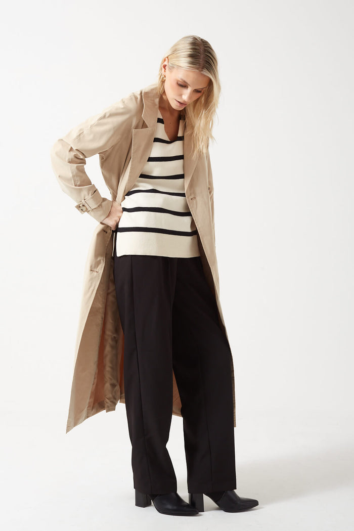 Saba Rollneck Knit Striped Jumper in Beige and Black