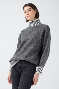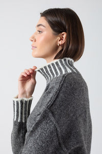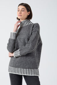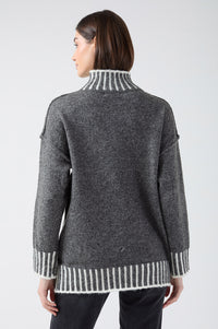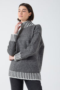 Nadia Stripe Detail Oversized High Neck Jumper in Grey