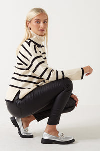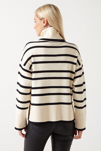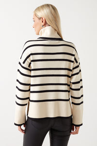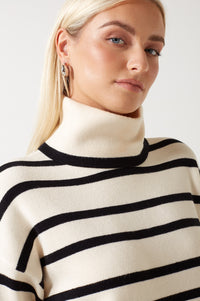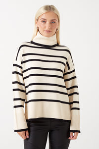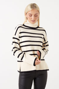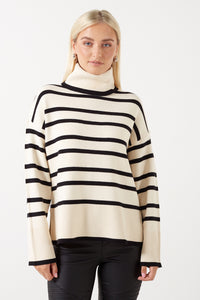 Saba Rollneck Knit Striped Jumper in Beige and Black