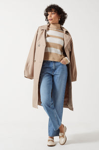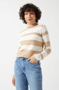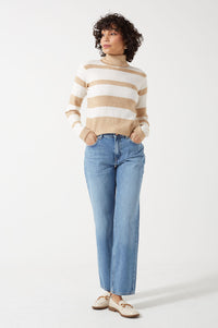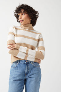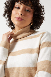 Sesilje LS Roll Neck Short Knit Striped Jumper in Birch