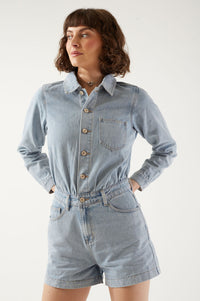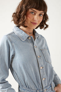Cecilia Long Sleeve Denim Playsuit in Light Blue