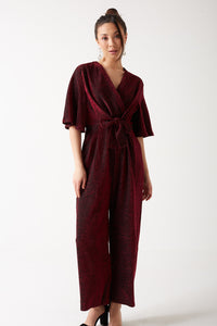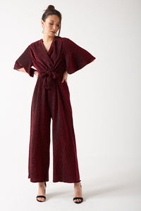 Dorothy Wide Leg Sparkly Jumpsuit in Wine