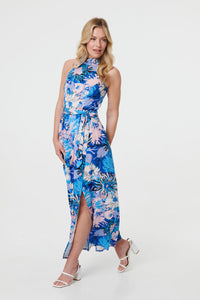 Karlie Floral Halter Neck Jumpsuit in Blue