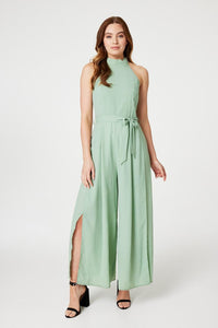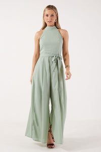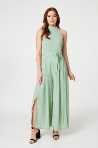 Karlie Halter Neck Belt and Tie at Back Jumpsuit in Mint