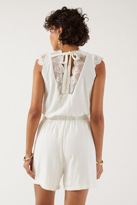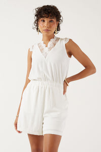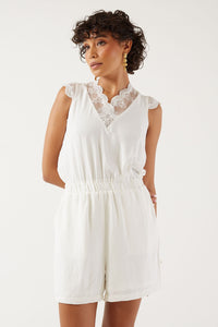 Klaudia Lace Detail Playsuit in White