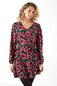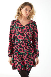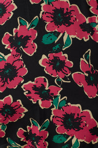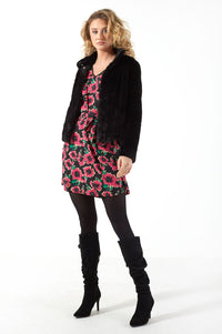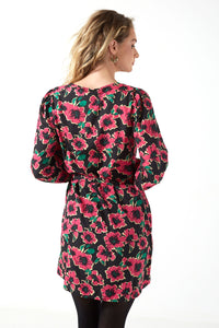 Caine L/S Short Pink Flowers Printed Dress in Black