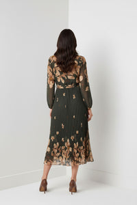 Kyla Pleated Midi Dress in Khaki
