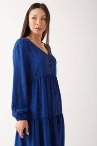 Avalee Long Sleeve Print Maxi Dress in Blue