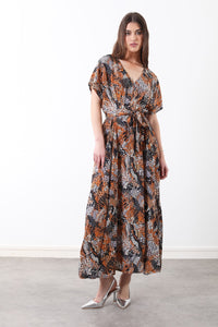 Leanne Animal Print Kimono Maxi Dress