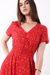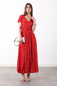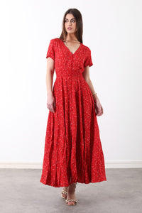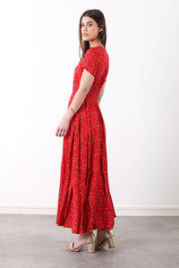 Turn heads in this dramatic floral maxi dress. It has a v-neck, faux wrap front, self tie belt, short cap sleeves, a zip back and a maxi length skirt with a high low hemline. Pair with strappy heels neutral strappy heels to make a style statement at any occasion.