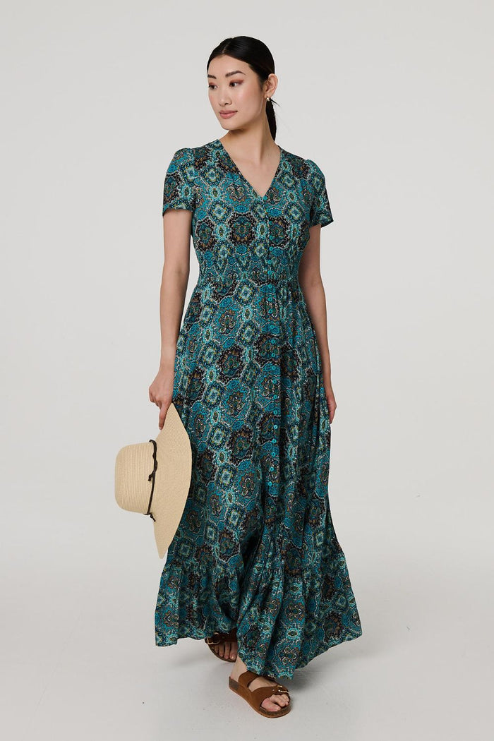Norah Floral Cap Sleeve Maxi Dress in Green