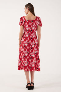 New in from Minueto, the Andrea Dress features shorts sleeves, midi ankle length, a side slit and a square neckline that turns it into a flattering fun style for the summer days.