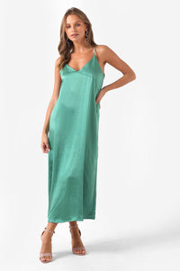 Featuring a satin-like finish, this slip dress is perfect for an outdoors date night. Pair with heels and a cardigan to complete the look.